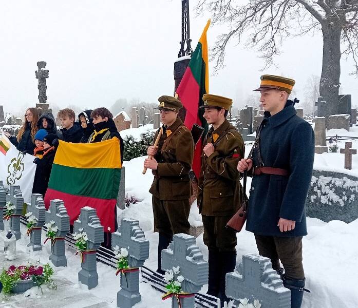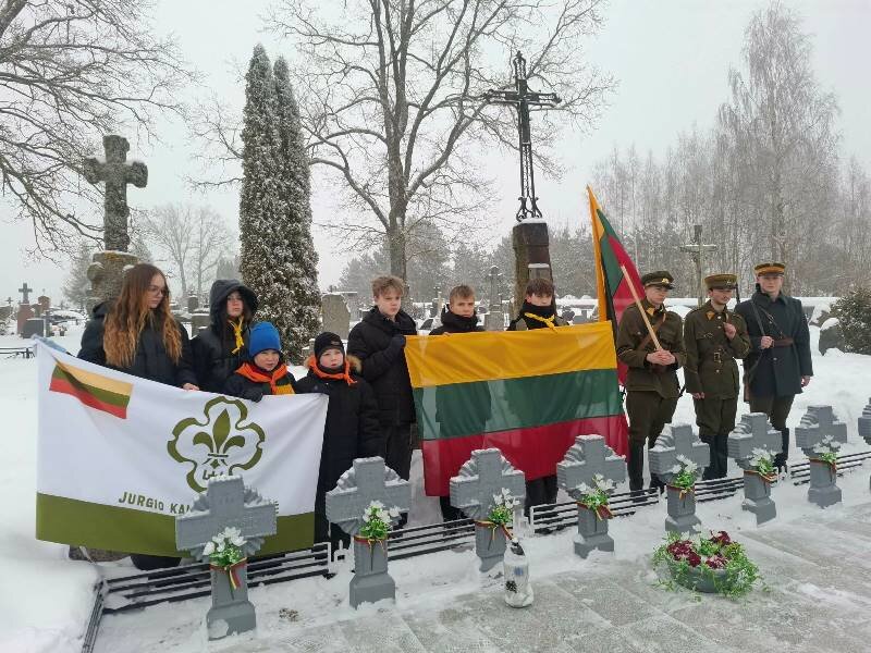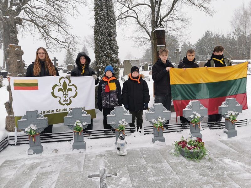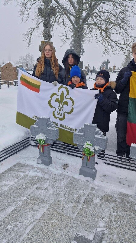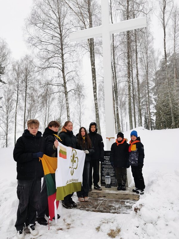 Grupė mokyklos skautų Lietuvos kariuomenės dienos išvakarės...